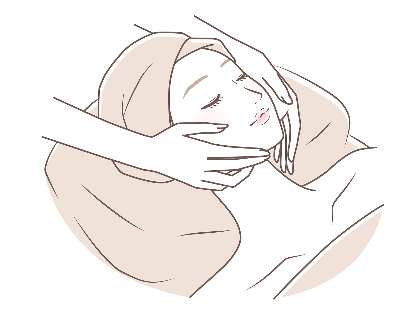 カウンセリング内容をもとに予約された施術を行なっていきます。 入浴と岩盤浴により毛穴が開いているので洗浄しやすくなっている他、 美容成分も浸透しやすく、エステの効果が出やすくなっています。